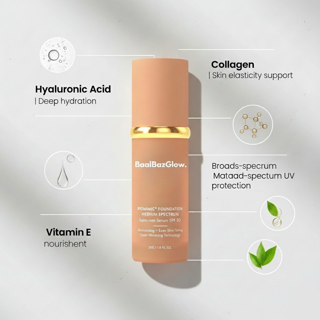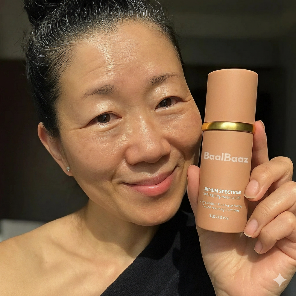 “As women age, their skin undergoes significant changes — loss of elasticity, dryness, and fine lines that typical foundations only make more visible. That’s why I recommend Baalbaaz Age-Defying Foundation for women over 40 and 50. Its adaptive formula blends seamlessly without settling into lines or pores, offering lightweight coverage that enhances your skin’s natural radiance instead of masking it. With active ingredients that nourish and protect, this foundation doesn’t just cover — it cares for your skin every day.”